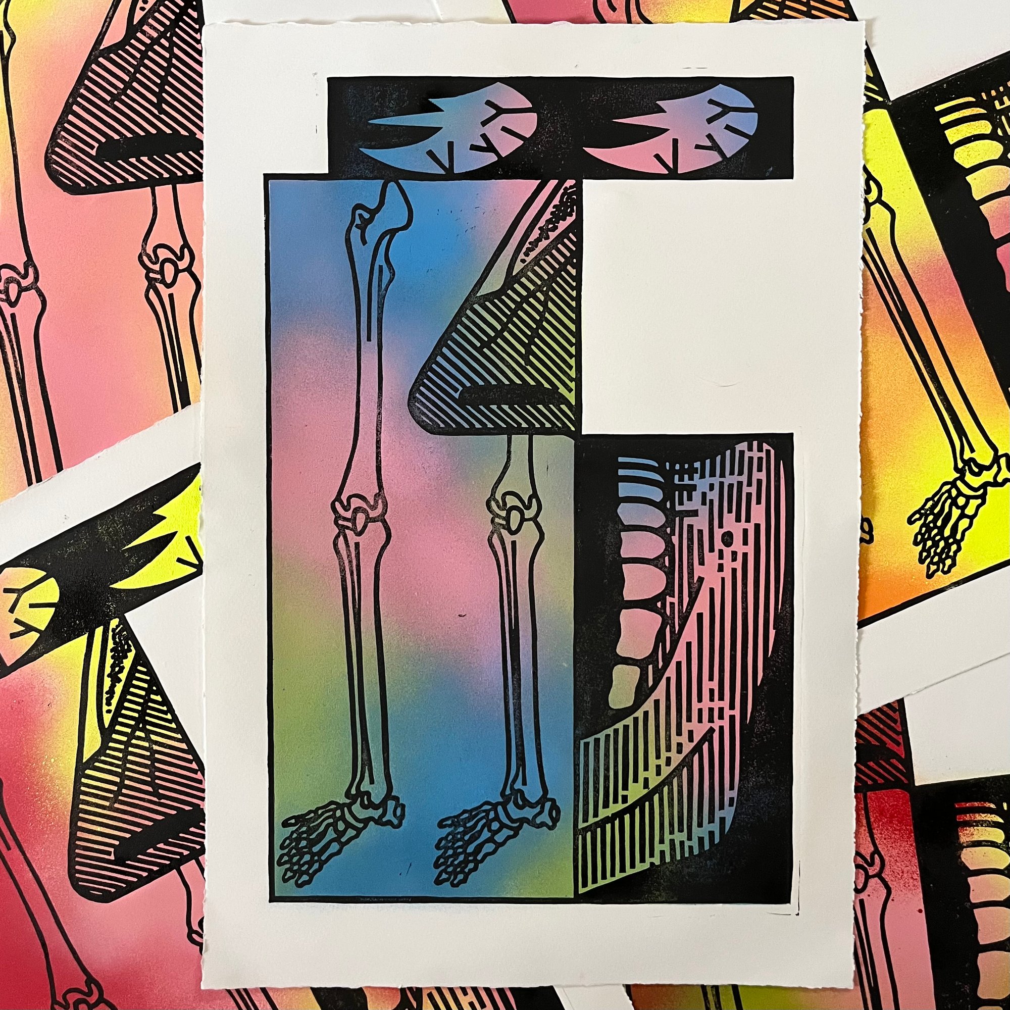 47x32cm mixed media original Lino print artwork. Printed on beautiful 250gsm Sommerset Satin white paper.