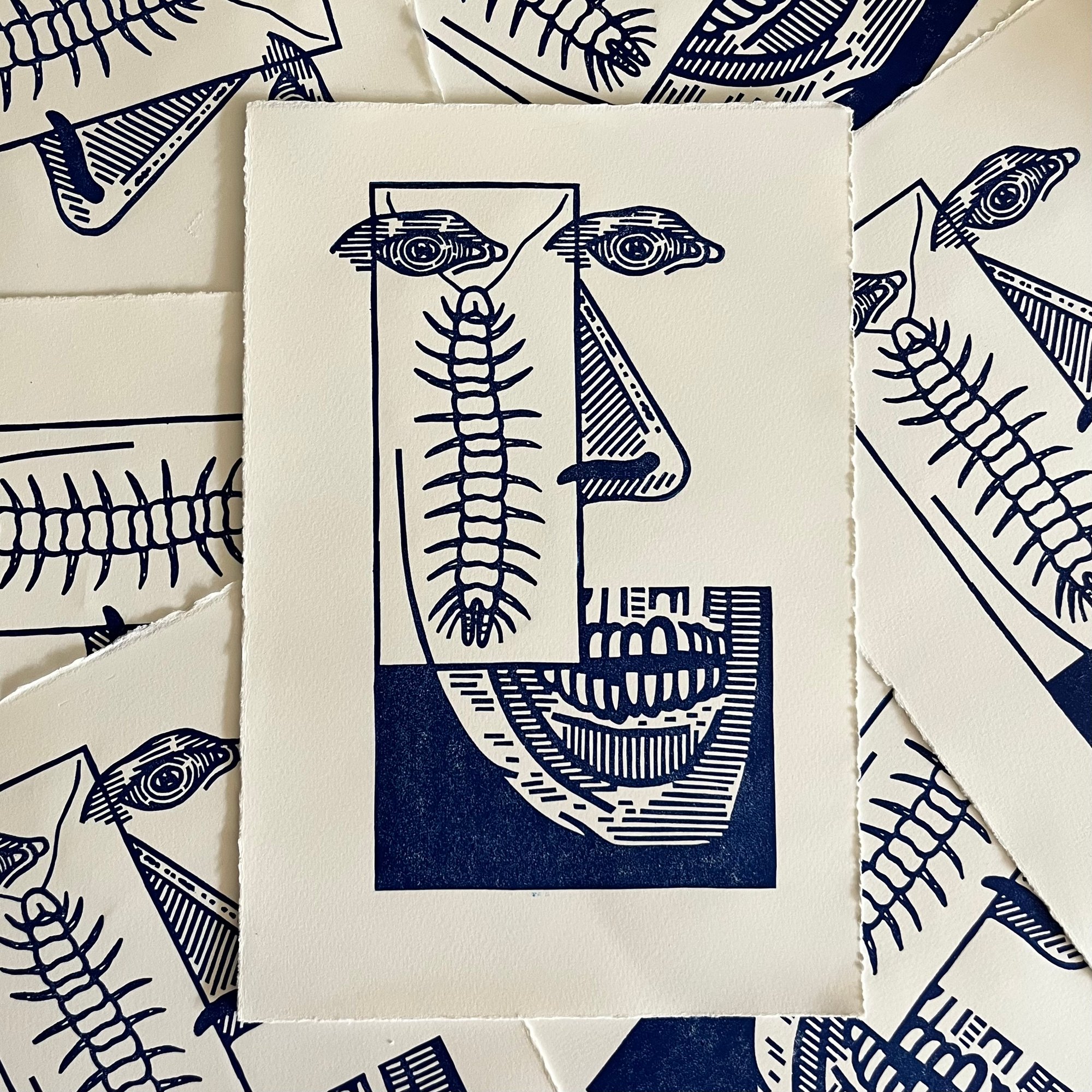 19x28.5cm, Lino print, Printed on beautiful 250gsm Sommerset satin white paper.